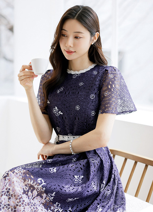 잘록하게 잡힌 허리라인에 자수레이스로 된 벨트가 SET로