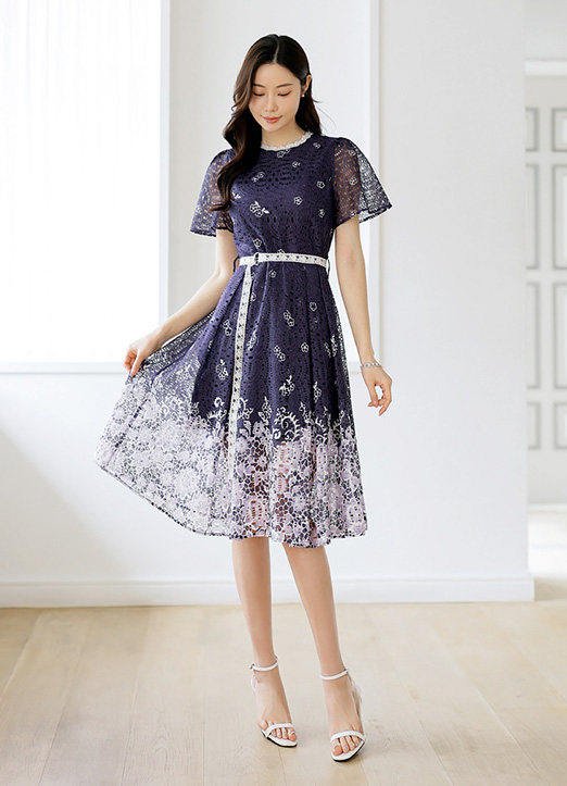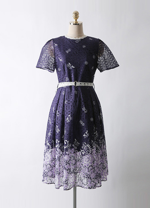 [LouisAngel] ウエストベルト ツートンフラワーレースワンピース op34214