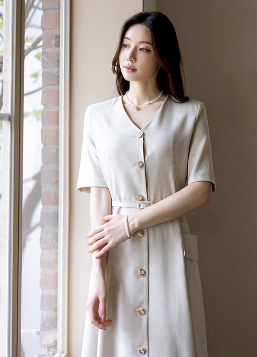 벨트SET 구성의 린넨 혼방 원피스에요 :)