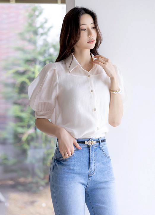 시스루함이 여리한 실루엣을 연출해주는 블라우스에요 :)
