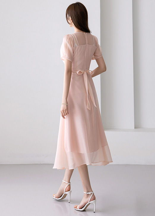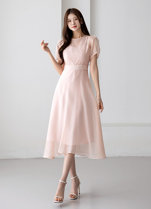 キャミソール付きシースルーフレアワンピース op34382