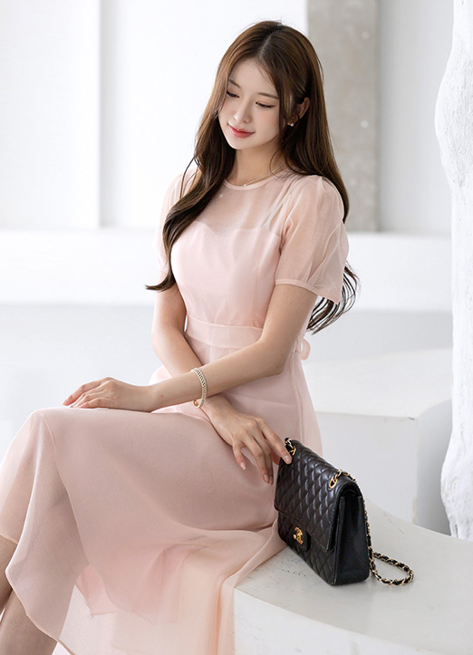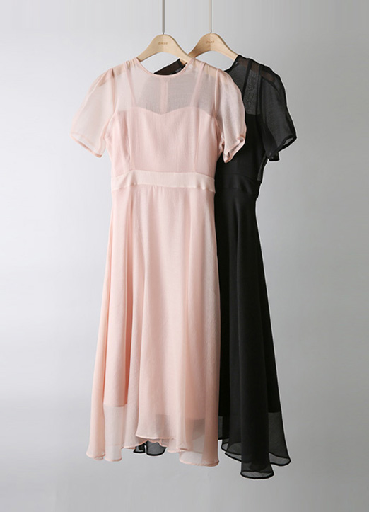 하늘하늘한 쉬폰 소재에 매끄러운 이너 원피스 이중구조로 된 원피스로