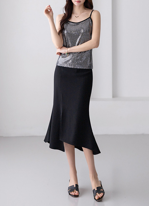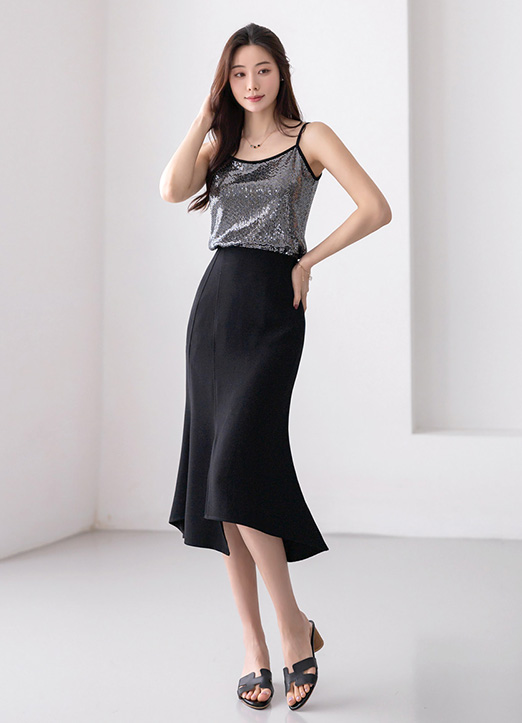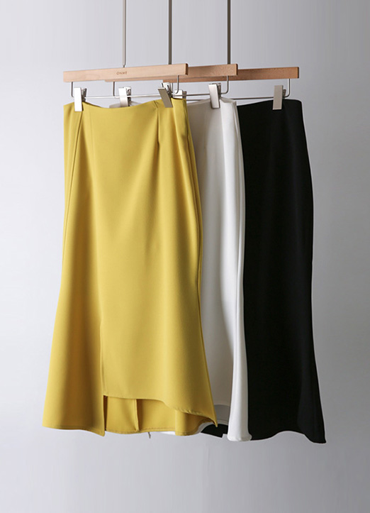 페미닌한 실루엣을 강조하는 팜므 실루엣 언발란스 밑단 절개 머메이드 라인 스커트에요 :)