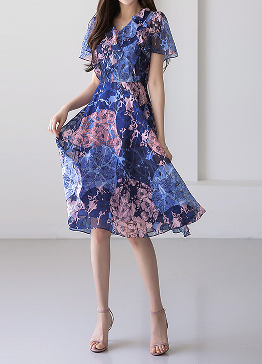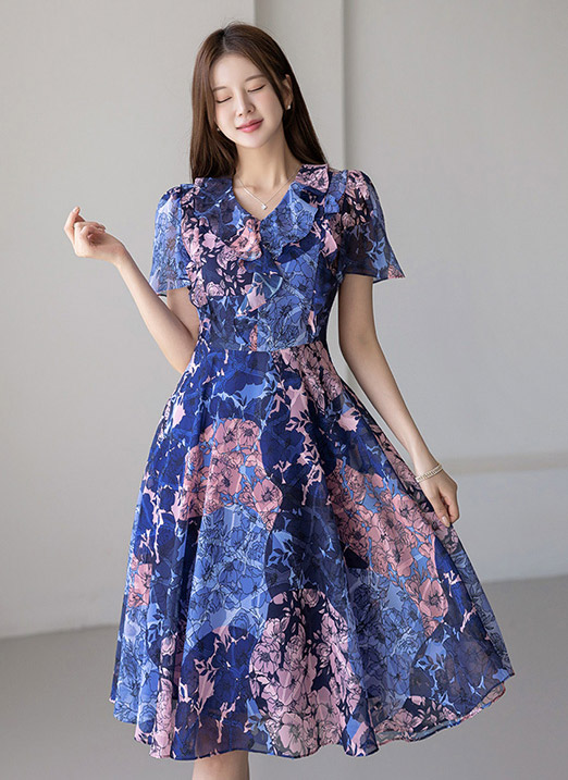 [LouisAngel] フラワー柄 フリルフレアワンピース op34490