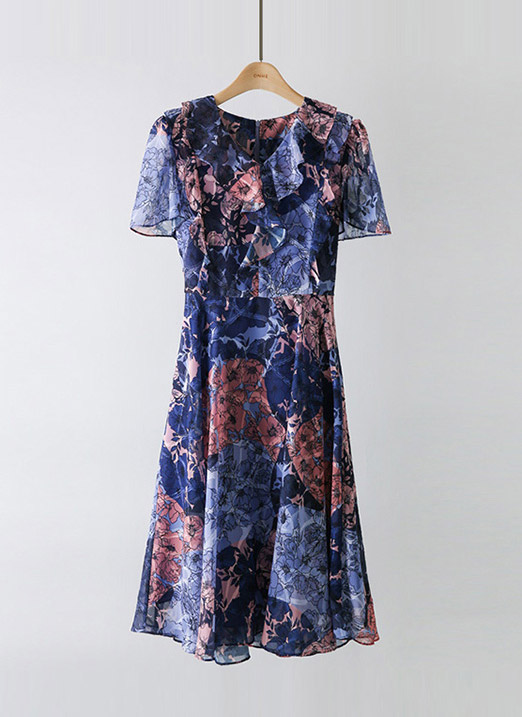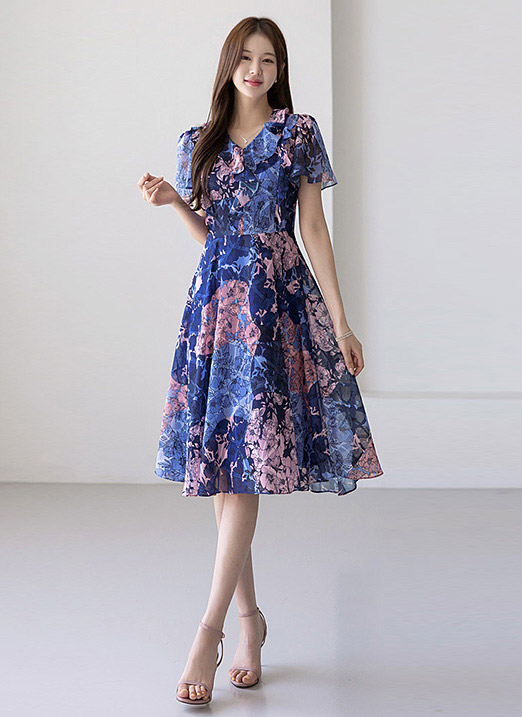 [LouisAngel] フラワー柄 フリルフレアワンピース op34490