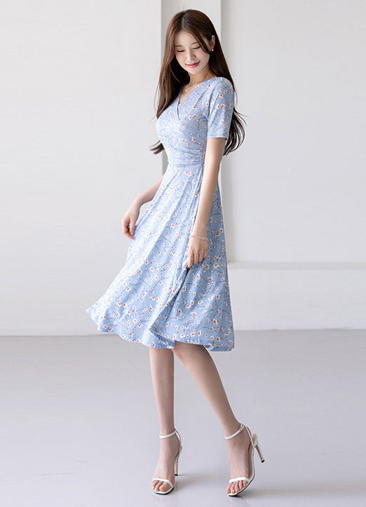[LouisAngel] フラワーラップデザインフレアワンピース op34511