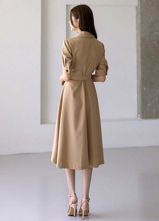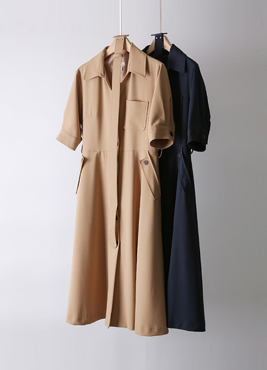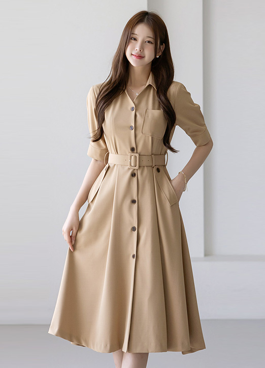 ベルトSETオープンカラーフレアシャツワンピース op34535