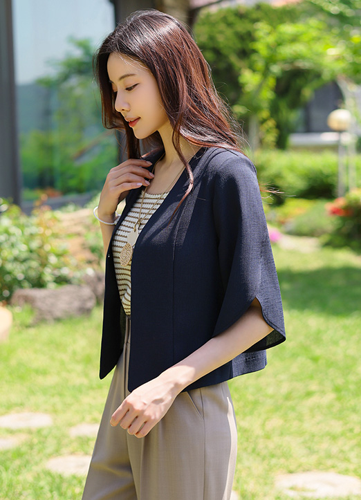 [LouisAngel] チューリップスリーブ ノーカラー リネンライクジャケット jk34676