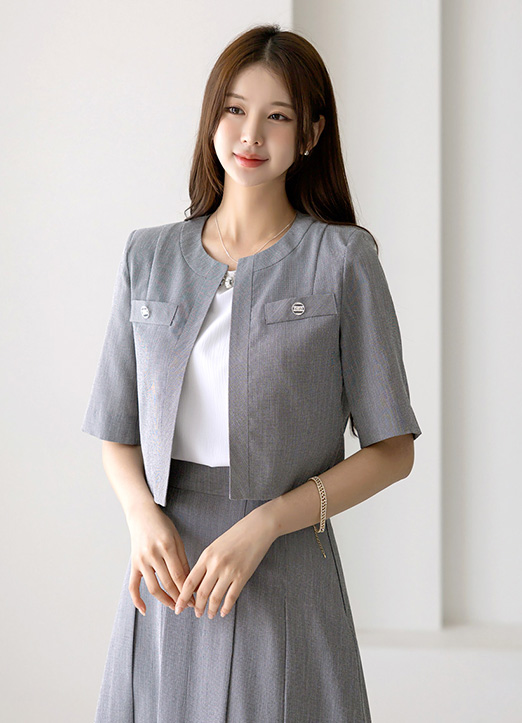 입체적인 텍스쳐로 깔끔하고 쾌적한 착용감을 주는 썸머 트위드 원단으로 제작되어
