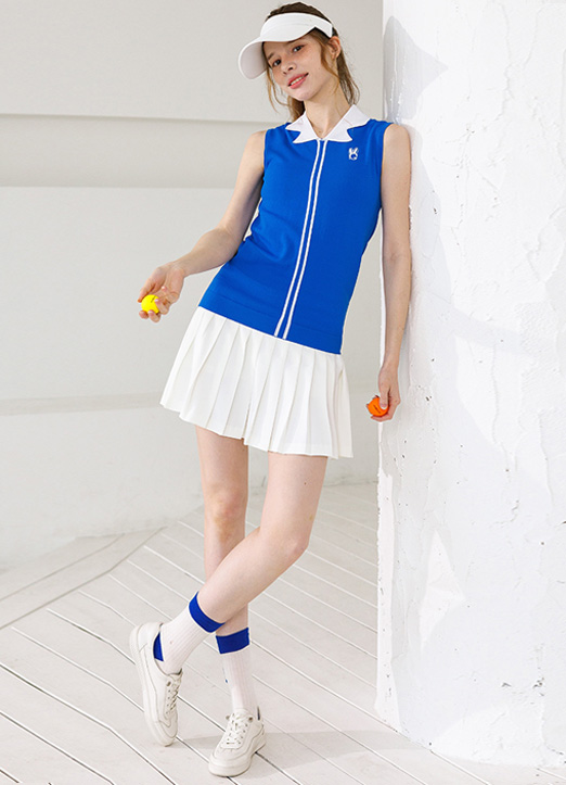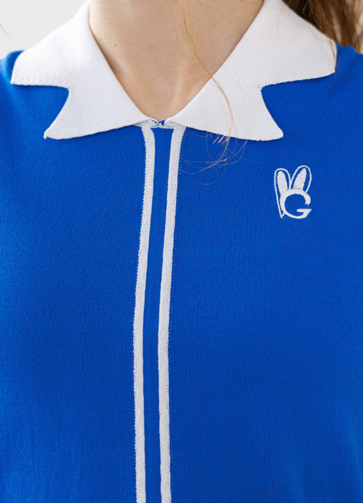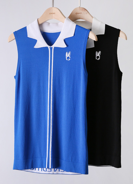 [QoG] ノースリーブバイカラーポロニットトップス sl34895