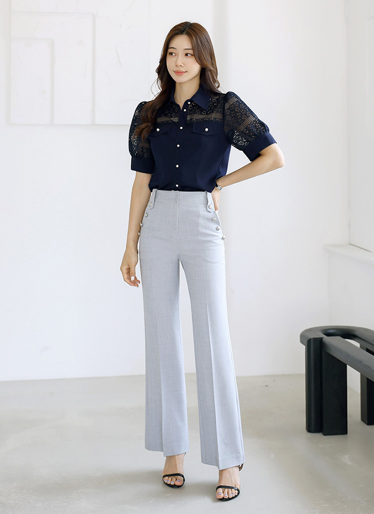 시스루한 펀칭 레이스가 배색된 고퀄리티 소재입니다-