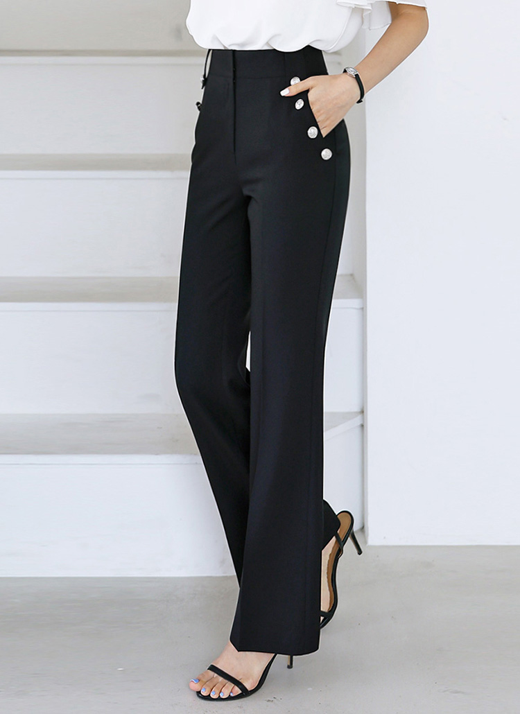 サイドボタンスリムフィットセミフレアスラックス 小悪魔パンツvol.122