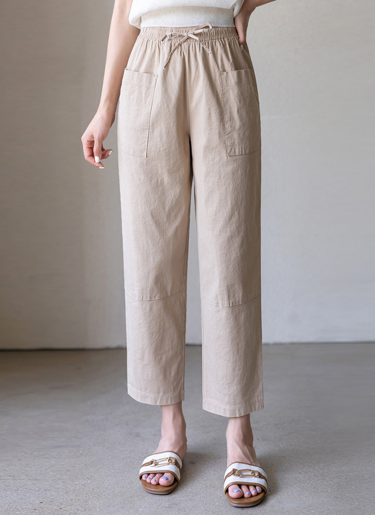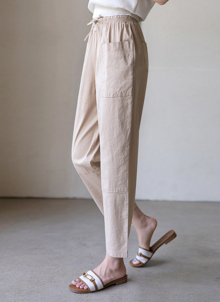 【4色展開】フロントポケットリネンコットンイージーパンツ pt35499
