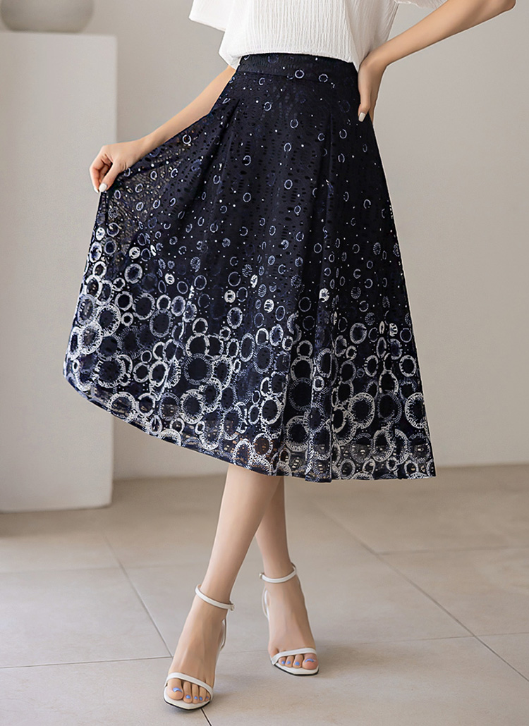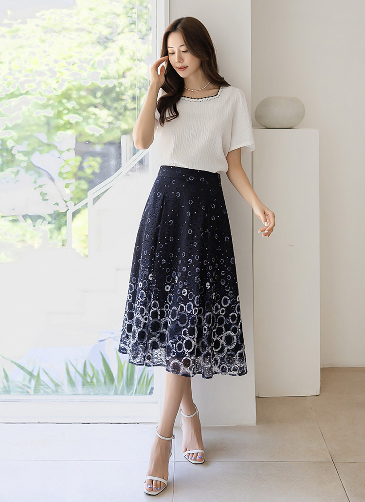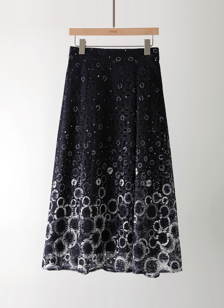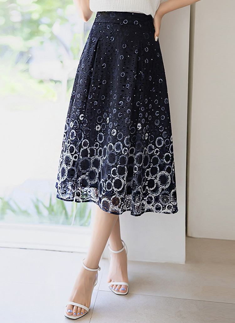 [LouisAngel] サークルパターンパンチングレースフレアスカート sk35526