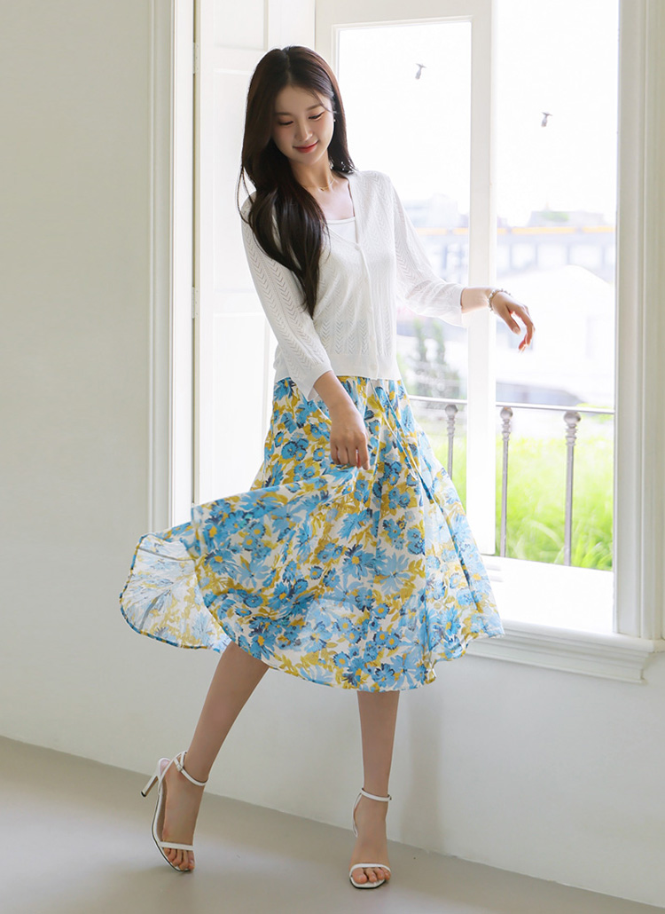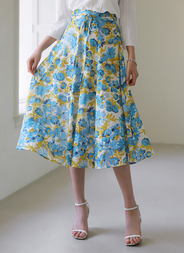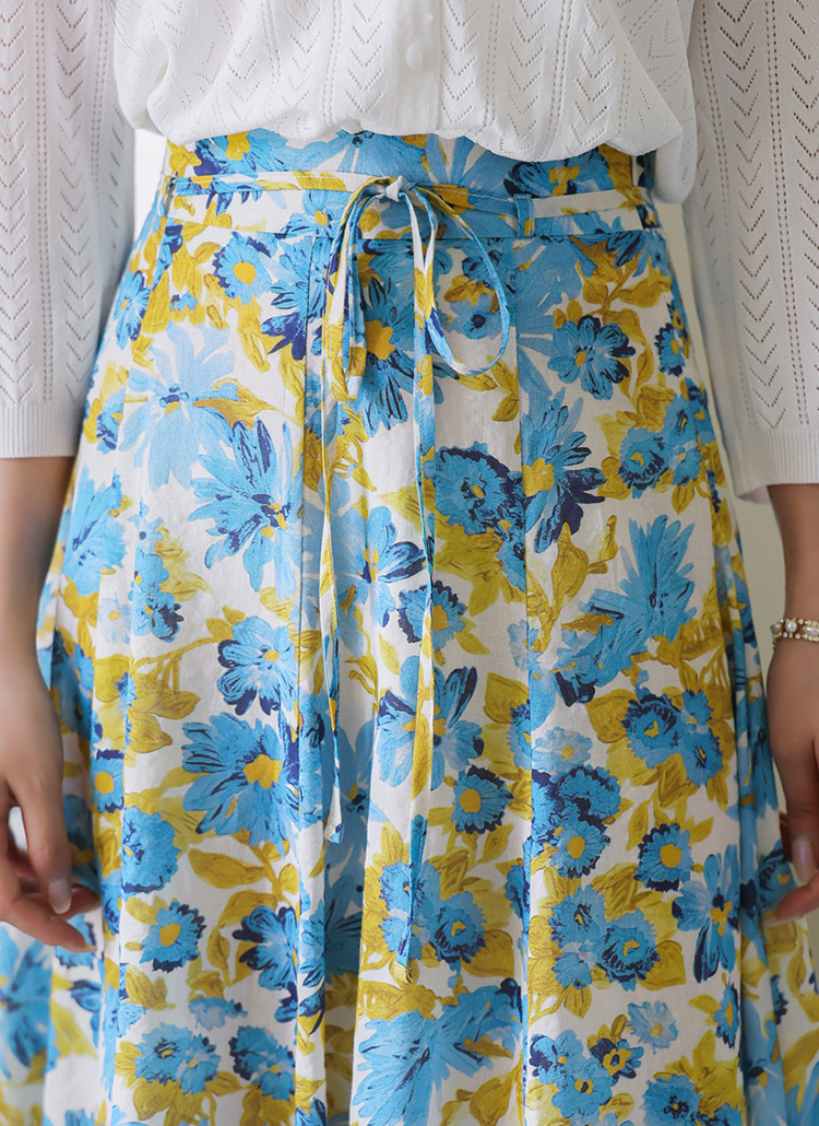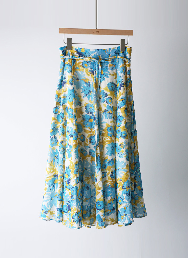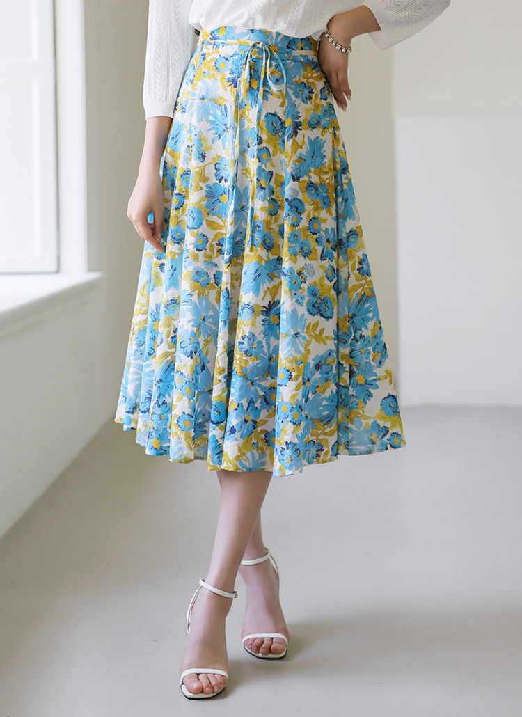 [LouisAngel] ウエストリボンブルーフラワーフレアスカート sk35616