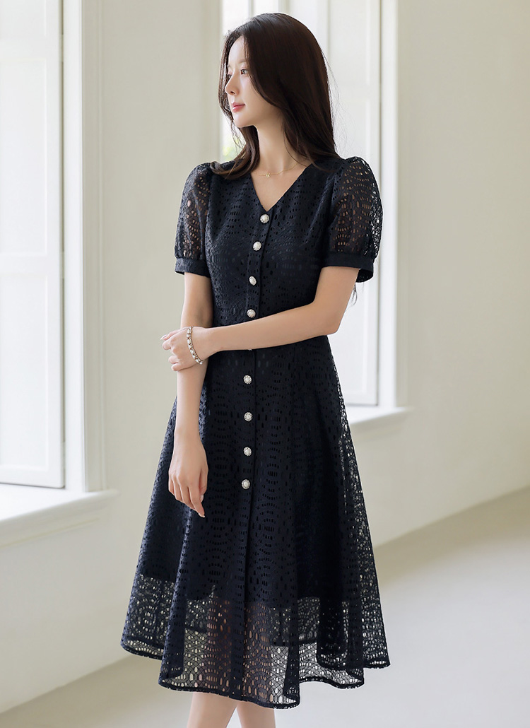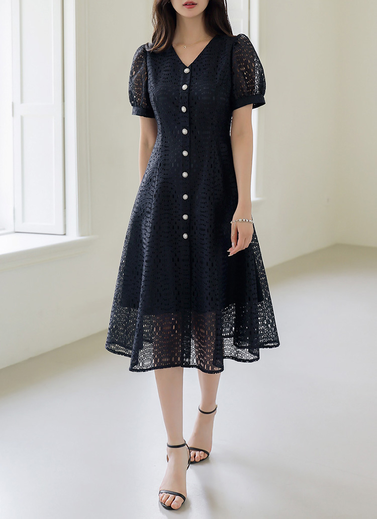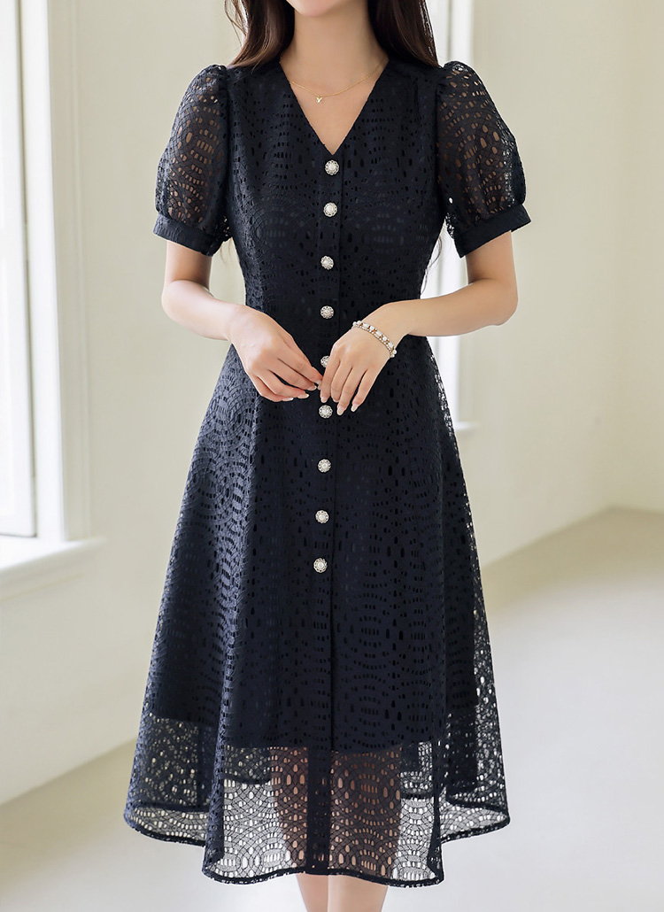 [LouisAngel] パールボタンレースフレアワンピース op35637