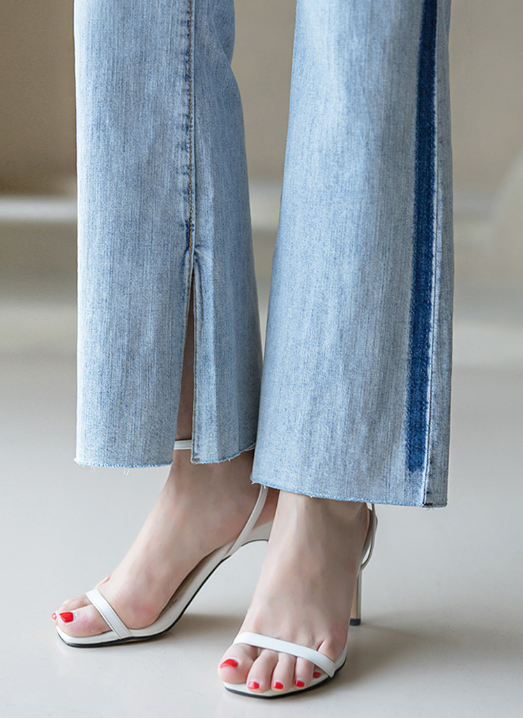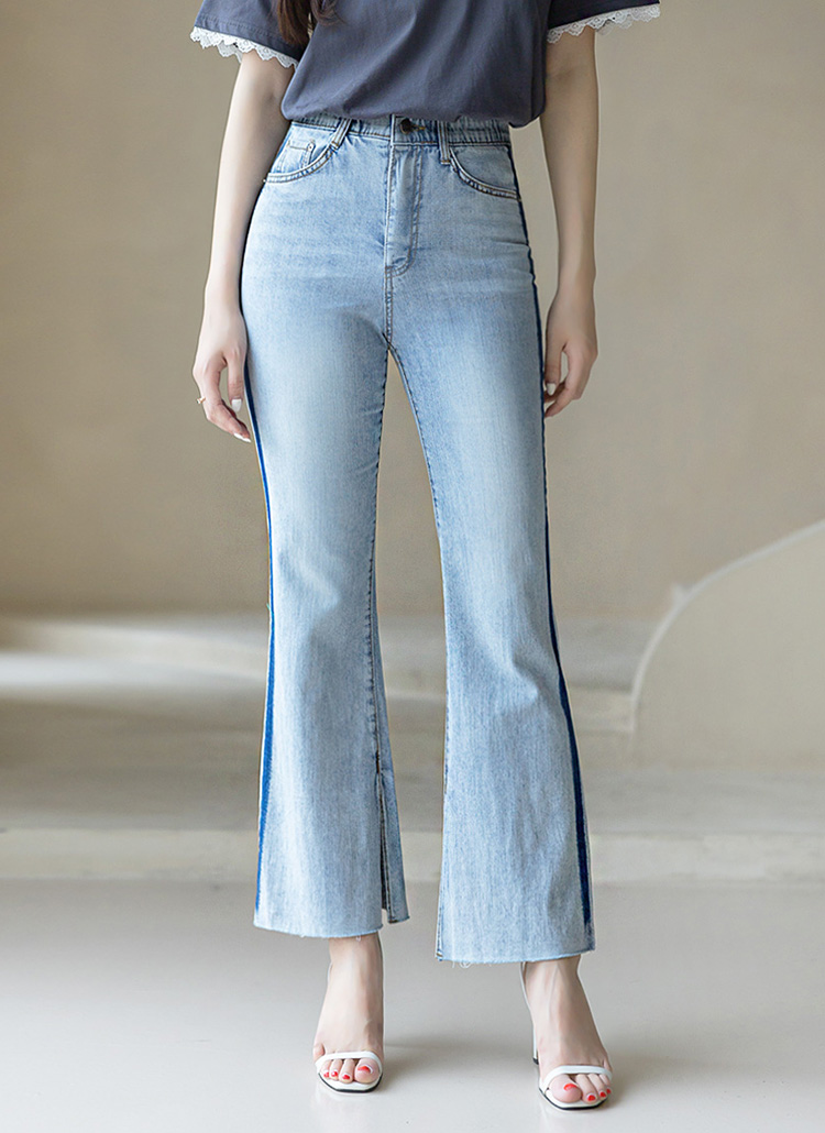 부츠컷 라인으로 페미닌한 실루엣을 연출해주며