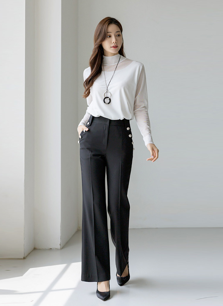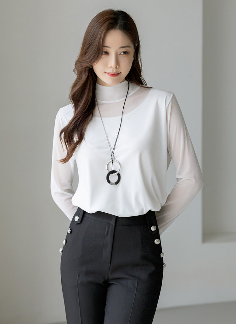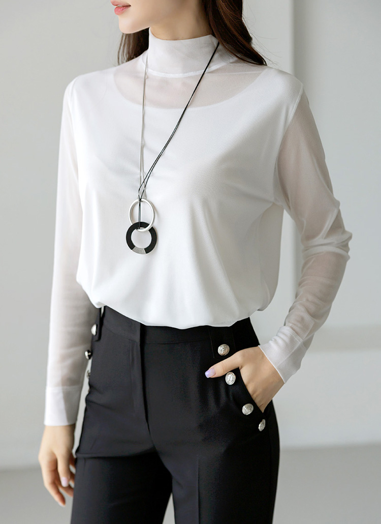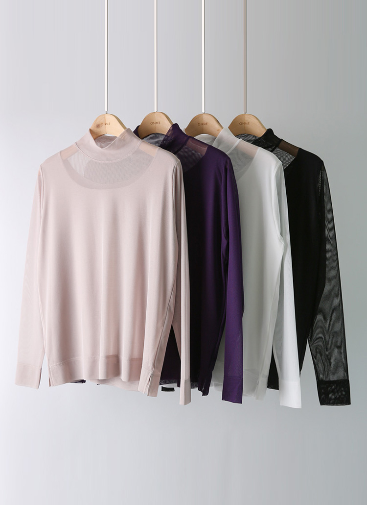 【4色展開】シースルースリーブハイネックプルオーバー bl35871