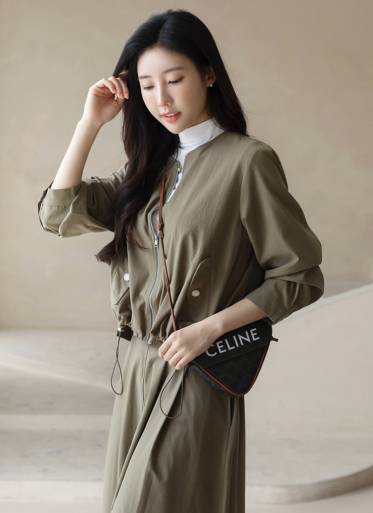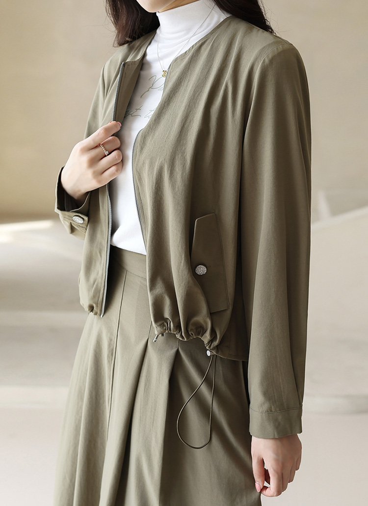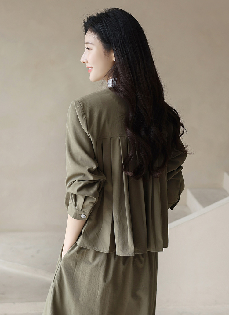 【セットアップ可能】バックプリーツウエストドロストノーカラージャケット jk35952
