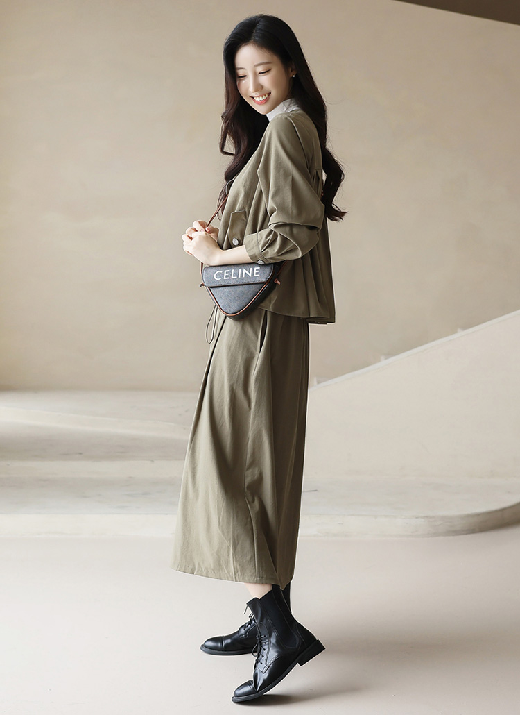 포켓에 볼드한 실버 버튼으로 페미닌한 포인트를 주었으며