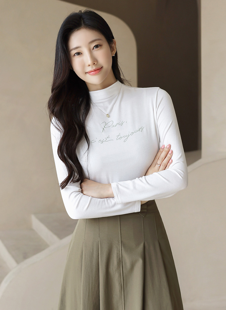 【5色展開】レタリングモックネックハイネックTシャツ ts35970