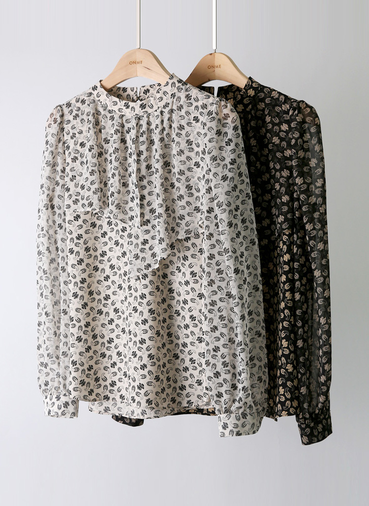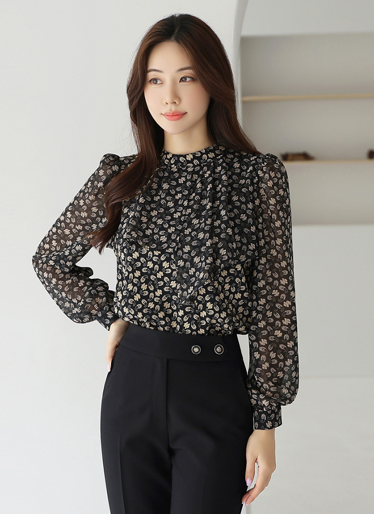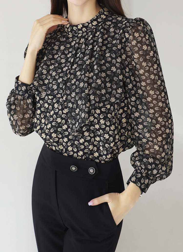[LouisAngel] ペーズリー柄アシメラッフル ハイネックシフォンブラウス bl35994