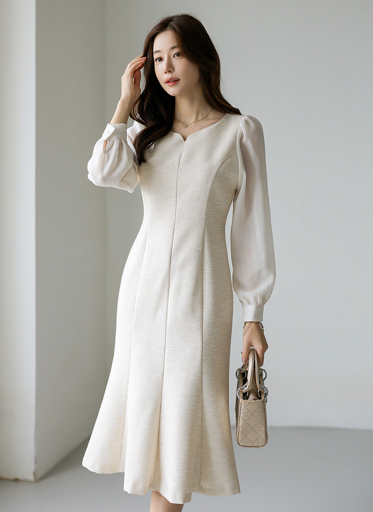 곡선미를 아름답게 연출하는 머메이드 라인과 사이드 절개 디테일로