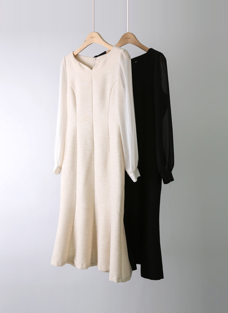 ハートネックシアースリーブドッキングマーメイドワンピース op36231