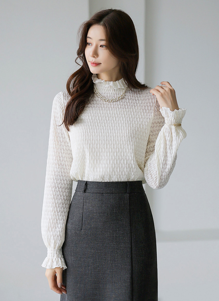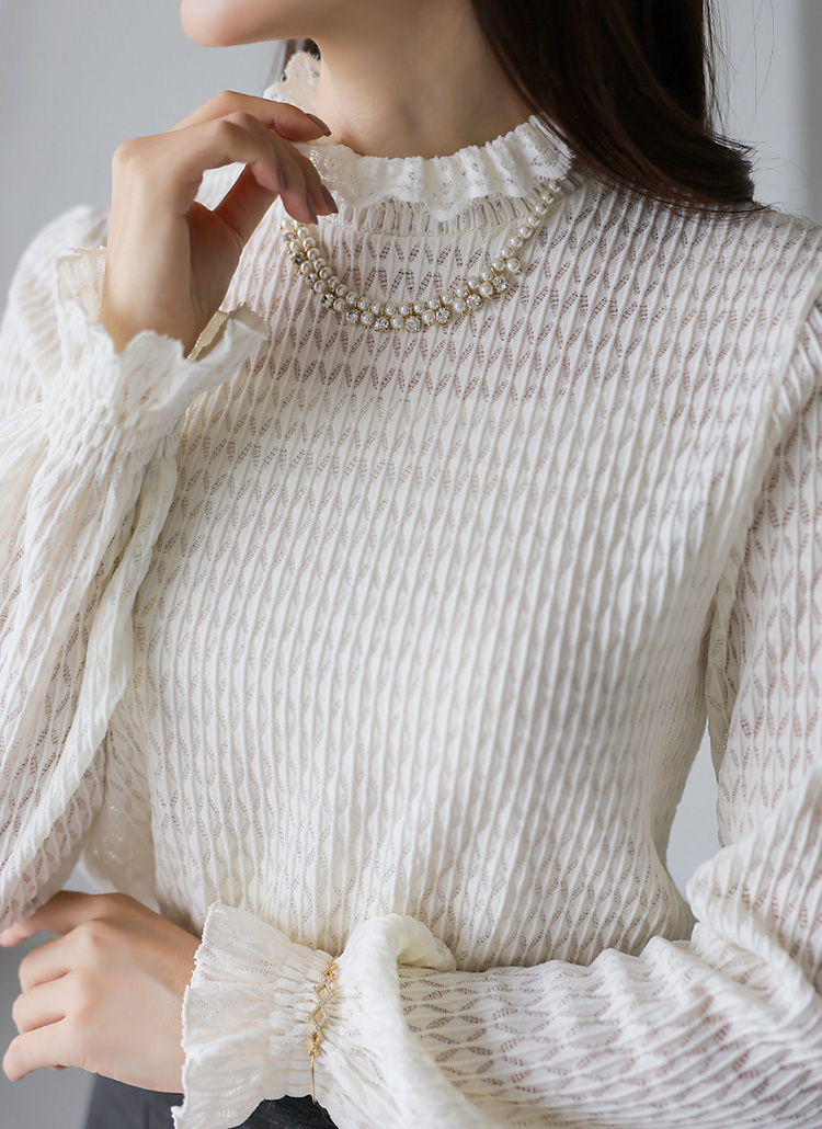 [LouisAngel] フリルハイネックジャカードレースプルオーバー ts36267