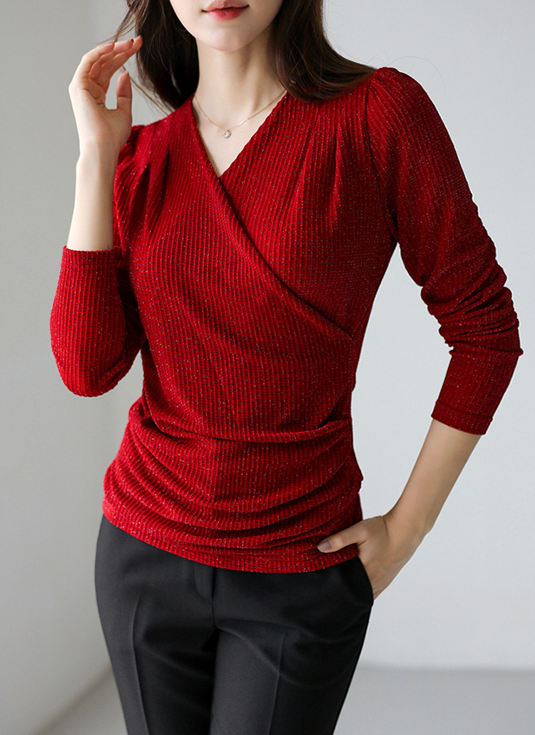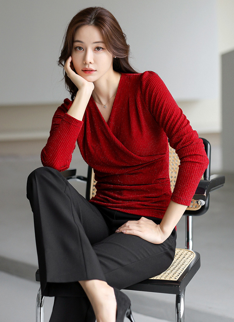 [LouisAngel] ラップデザインシャーリングラメリブプルオーバー ts36276