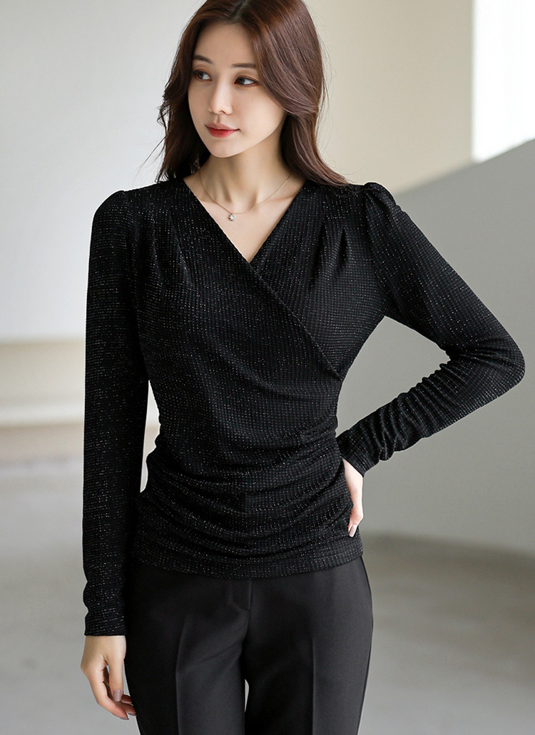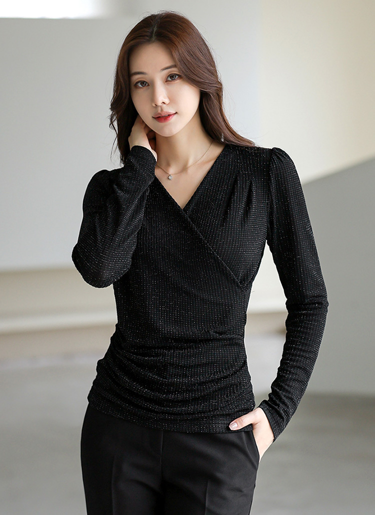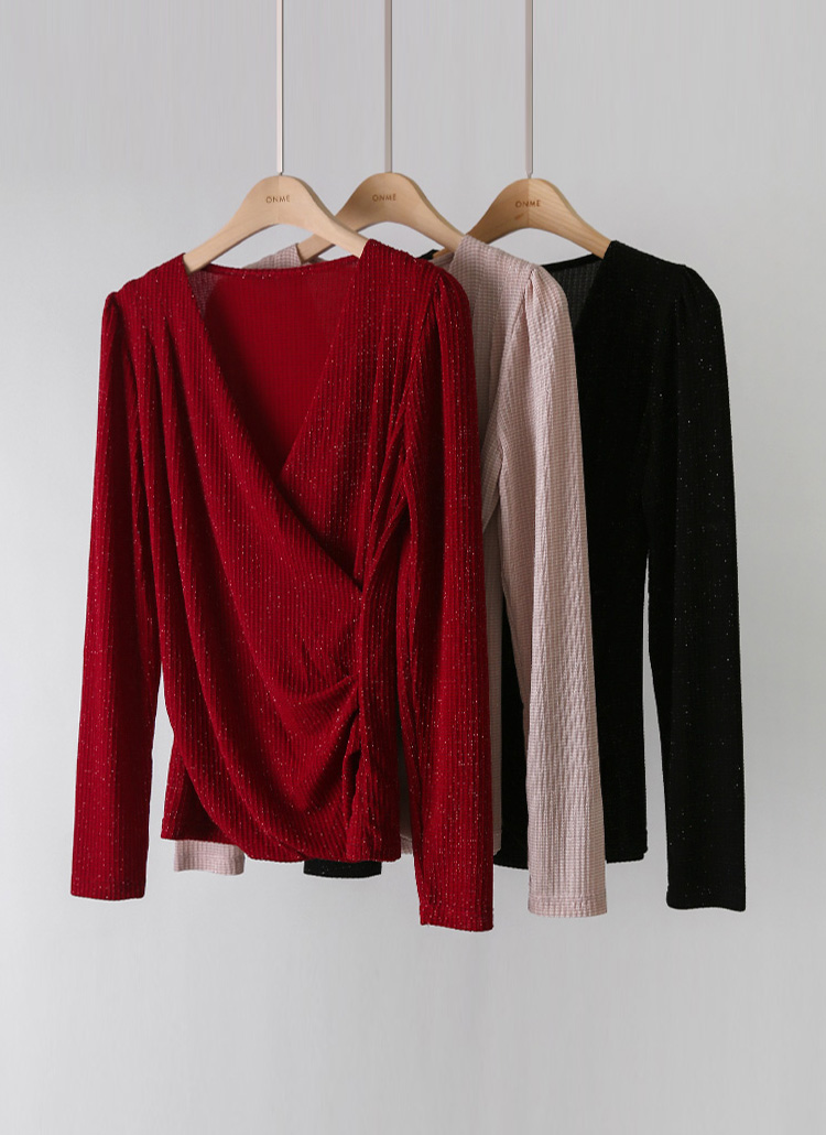 [LouisAngel] ラップデザインシャーリングラメリブプルオーバー ts36276