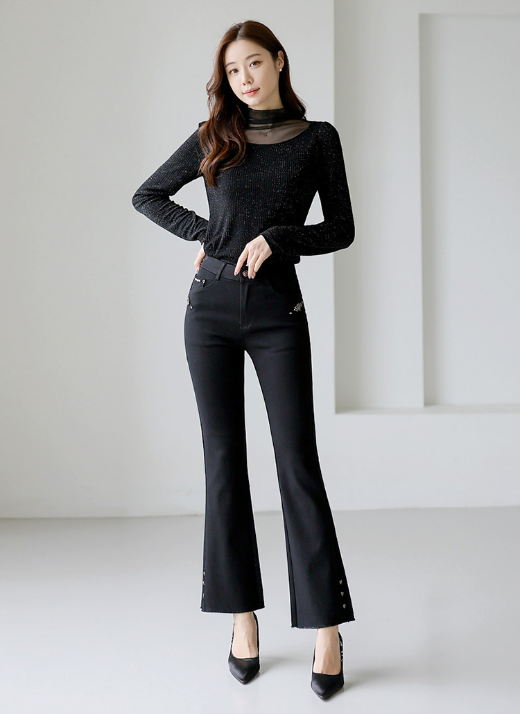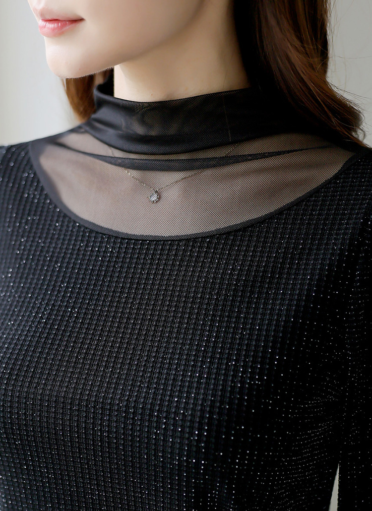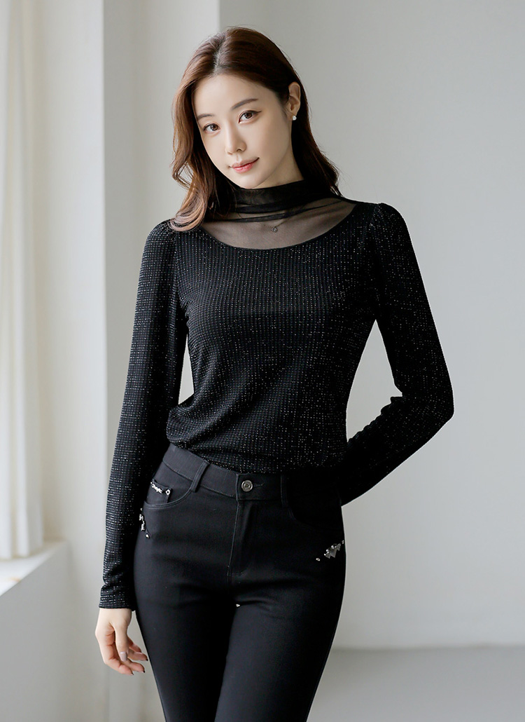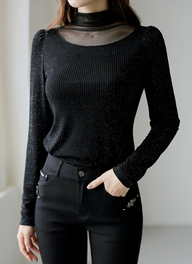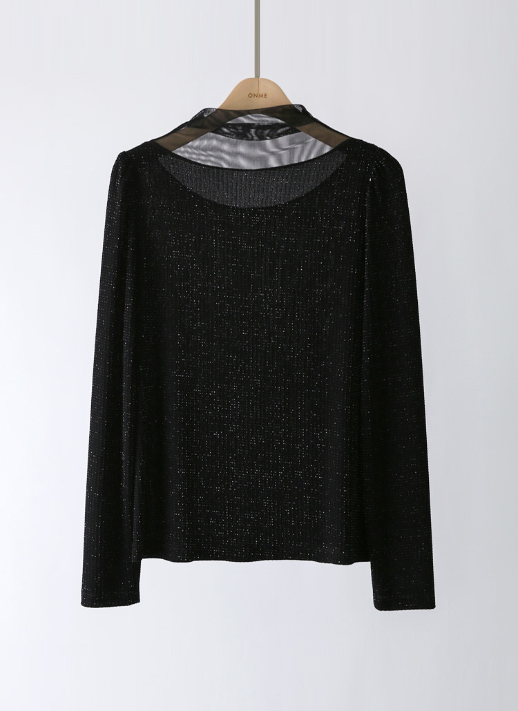 [LouisAngel] シースルーハイネックラメジャガードプルオーバー ts36312