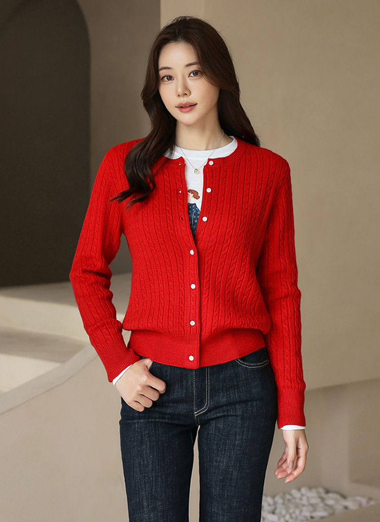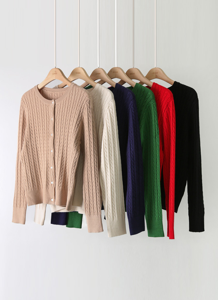 【6色展開】ラウンドネックケーブルニットカーディガン cd36389