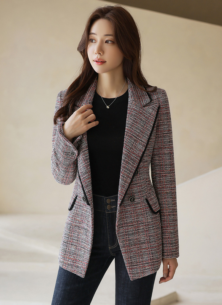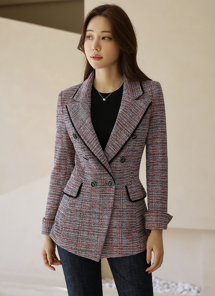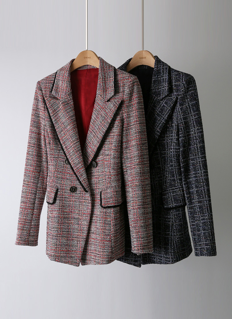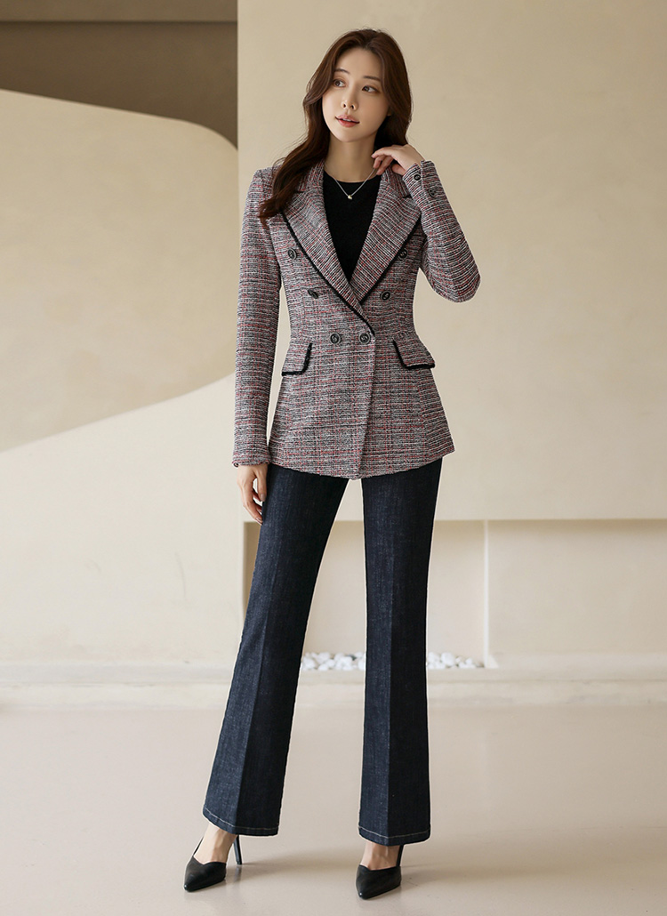 오묘한 매력을 선사하는 페미닌 슬림라인 더블 자켓이에요 :)