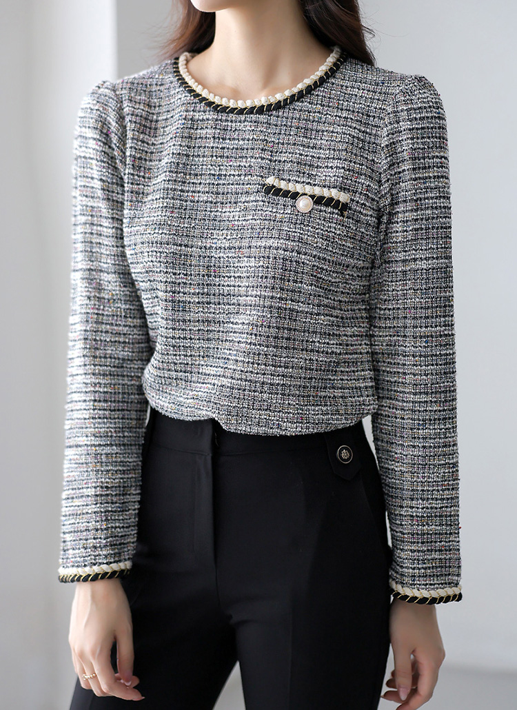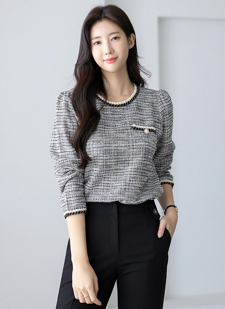 ツイストバイカラートリムツイード調ブラウス bl36560