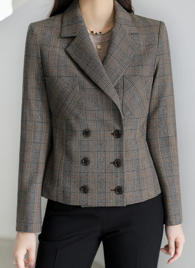 더블버튼 세미크롭 체크 자켓이에요 :)