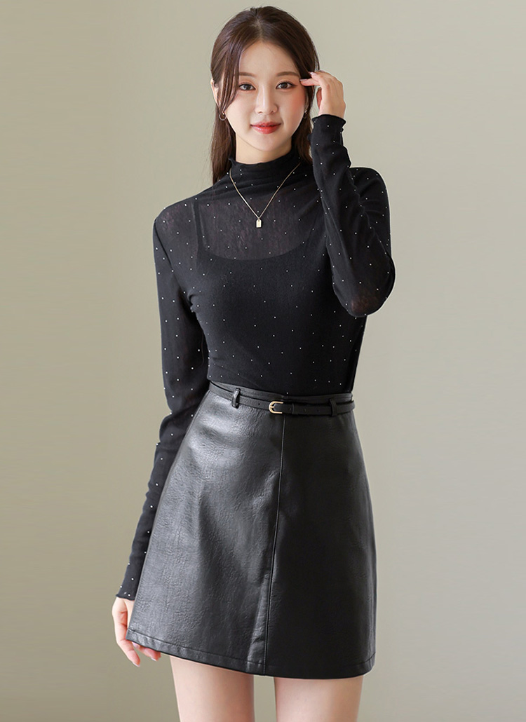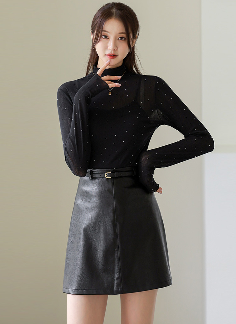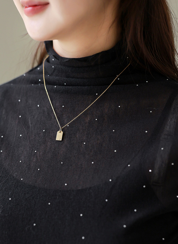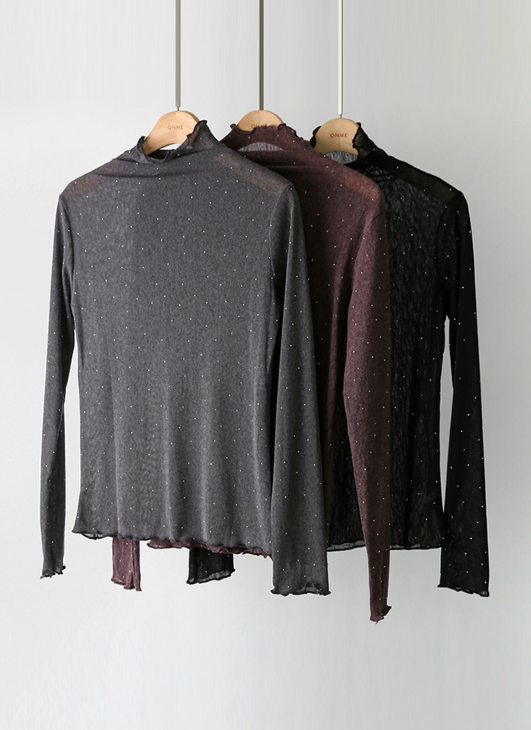 [THE ONME] ラインストーン付きシースルーハイネックプルオーバー ts36623
