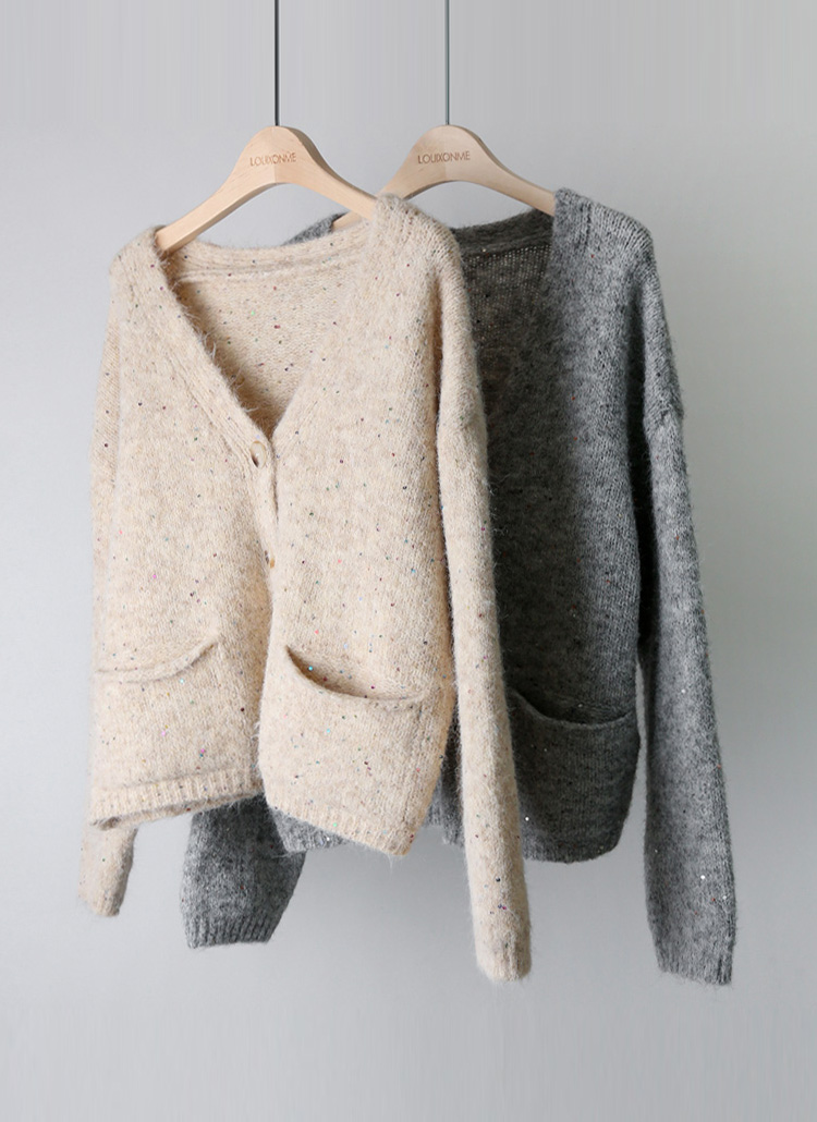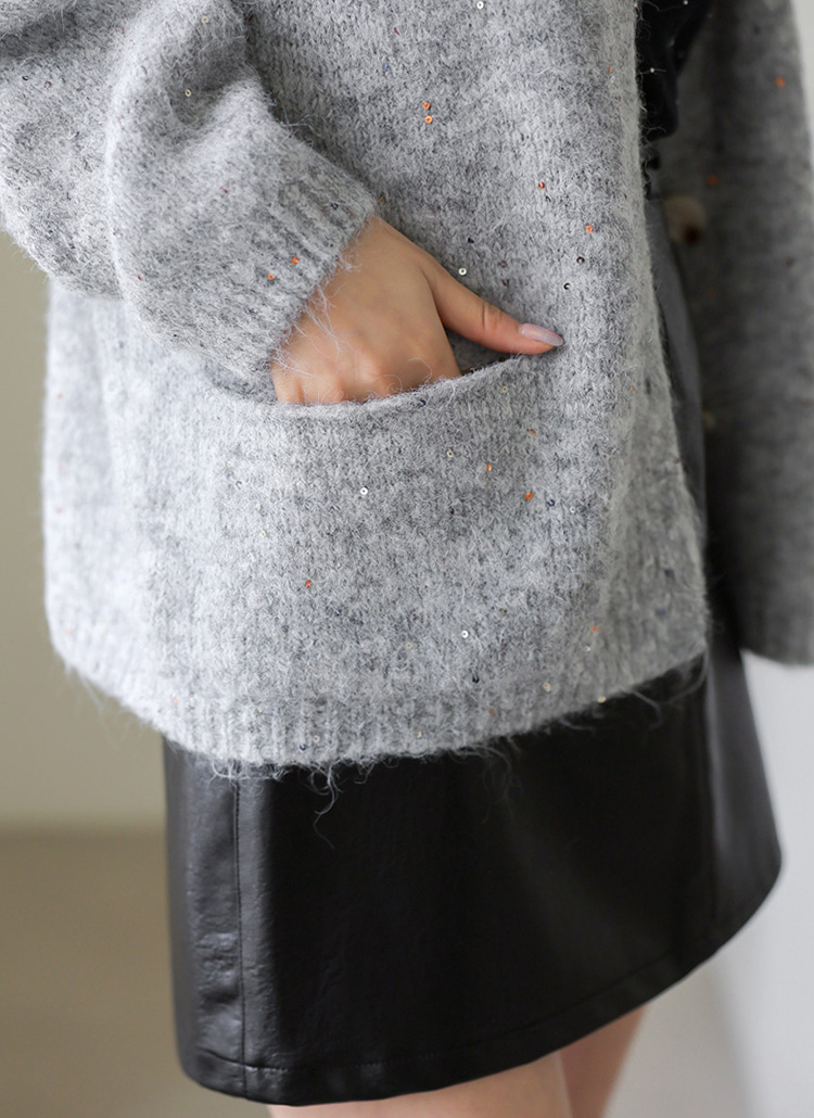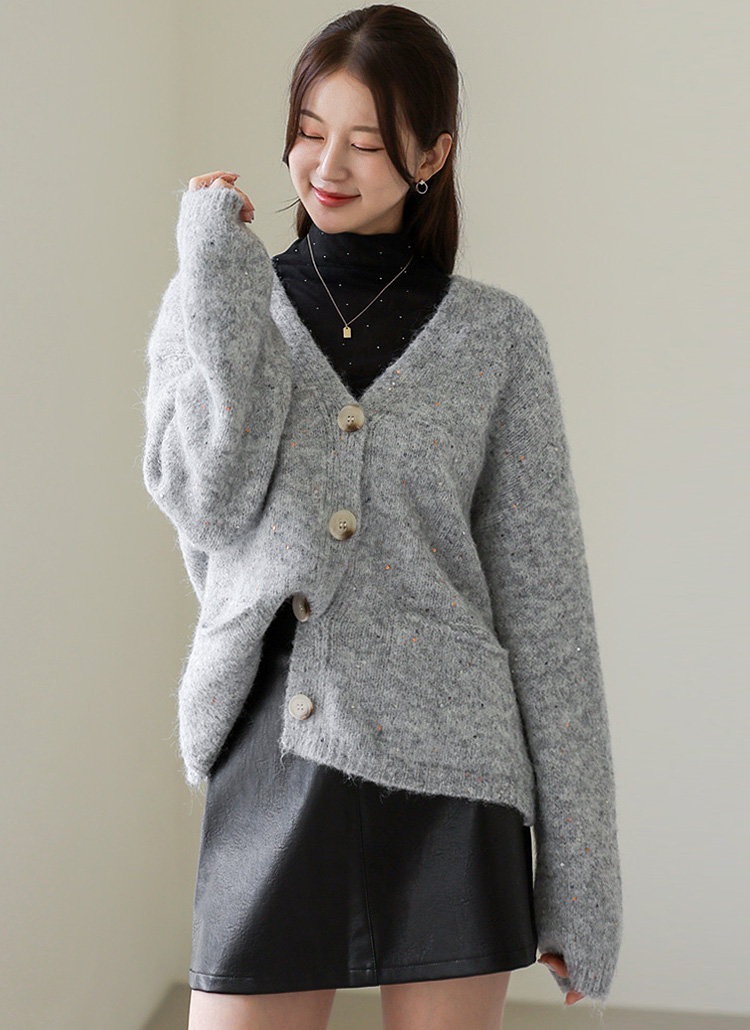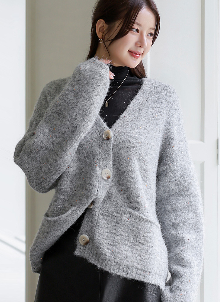 여리여리한 실루엣을 연출해주는 스팽글 포인트 니트 가디건이에요 :)