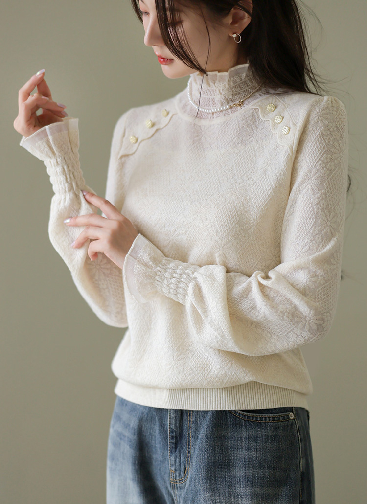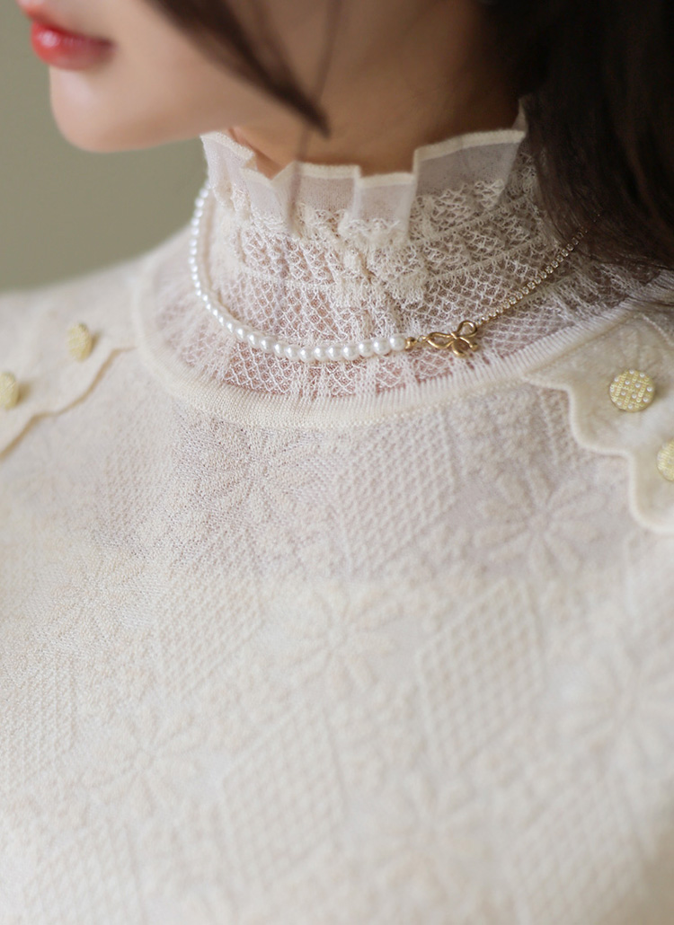 [THE ONME] フリルネックフラワーレースジャガードニットプルオーバー nt6662