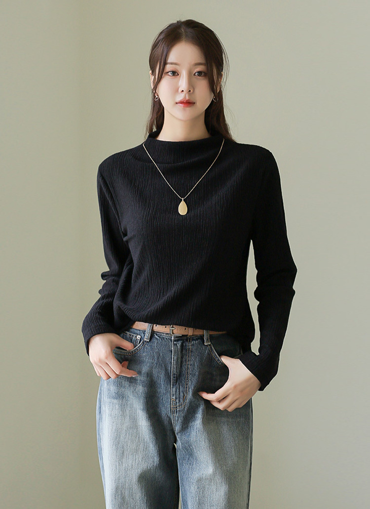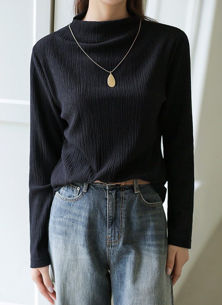 [THE ONME] モックネックプリーツTシャツ ts36695