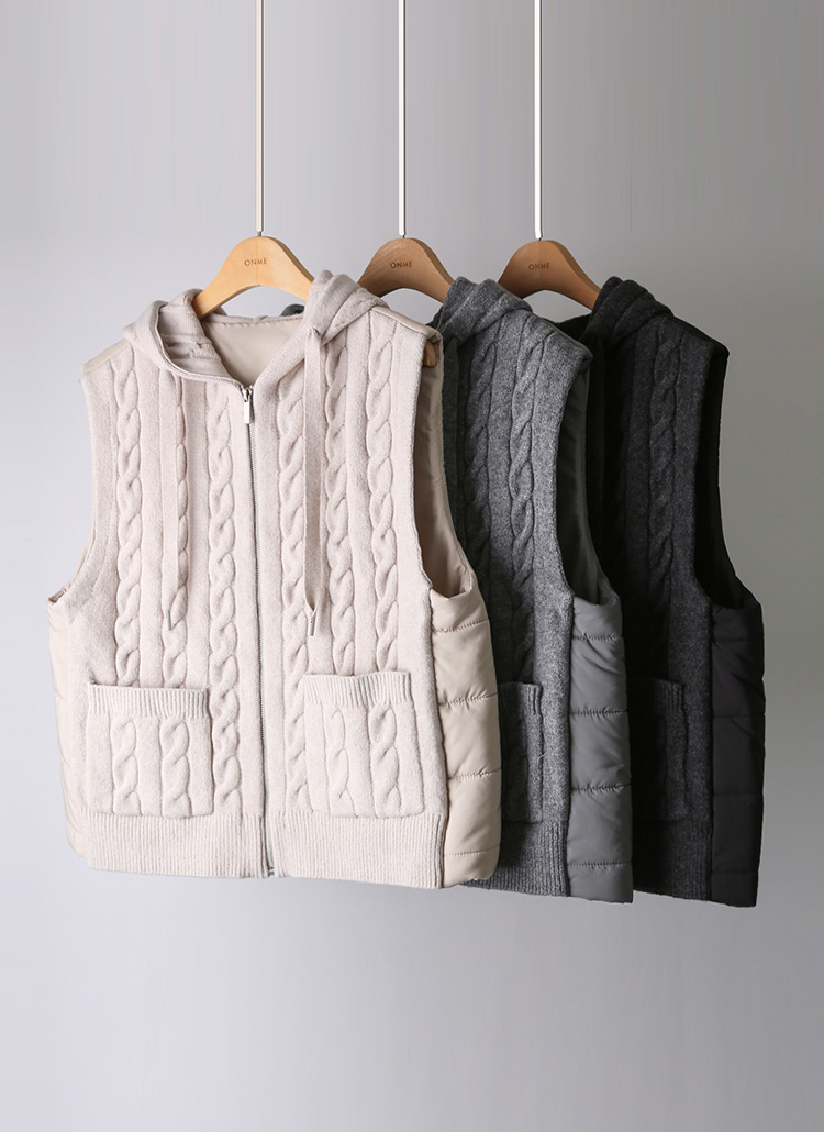 [THE ONME] ケーブルニットドッキングエコダウンベスト vt36725
