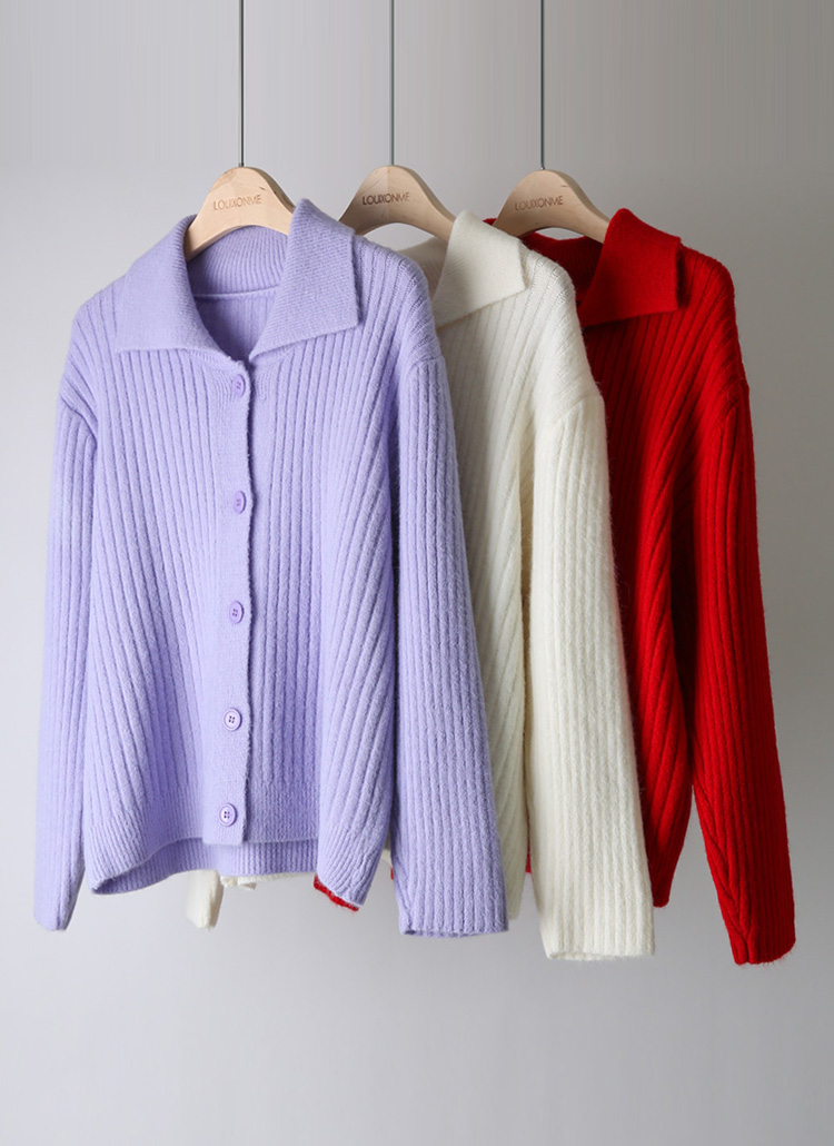 [THE ONME] ビックカラーリブニットカーディガン cd36779