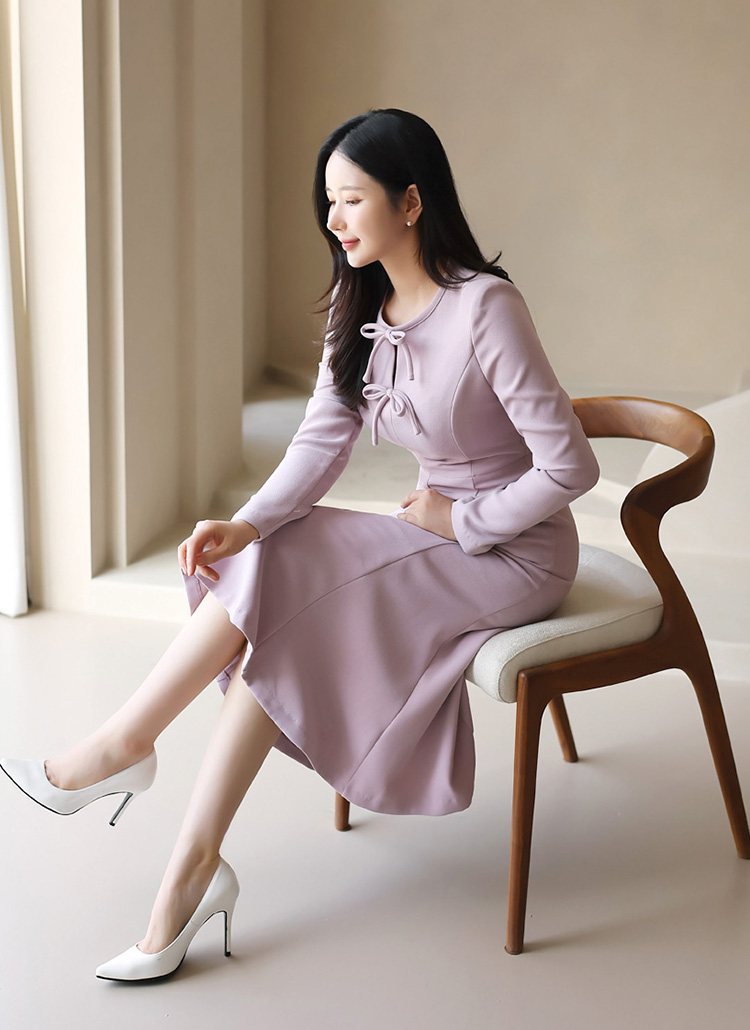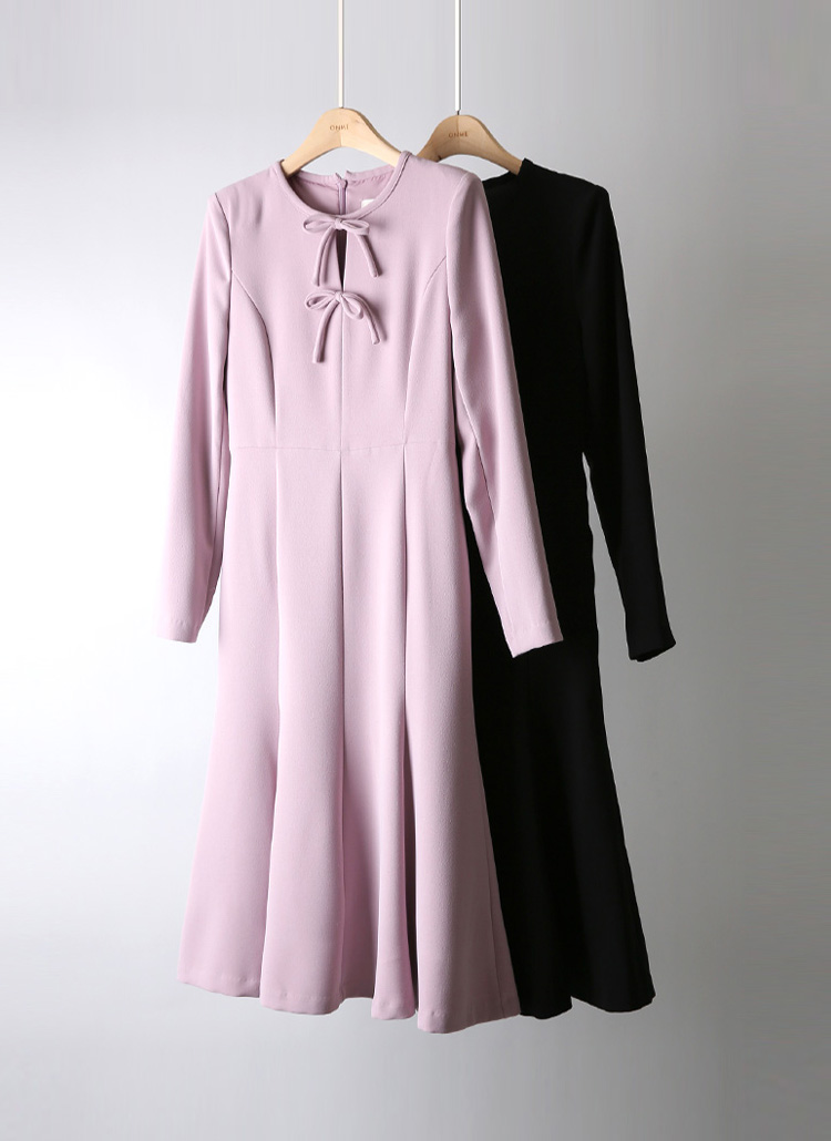 사랑스러운 더블 리본 디테일로 레이디라이크한 무드를 강조하며