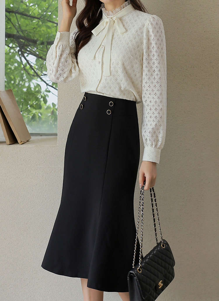 머메이드 실루엣으로 여성스러운 라인을 강조하며