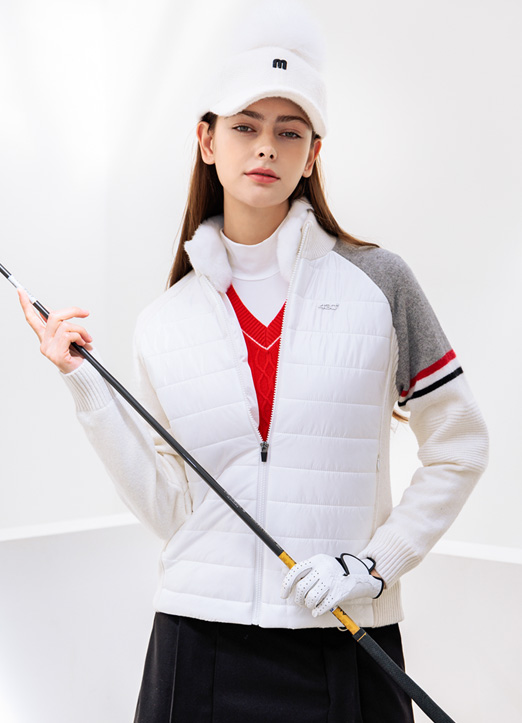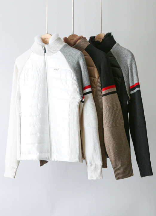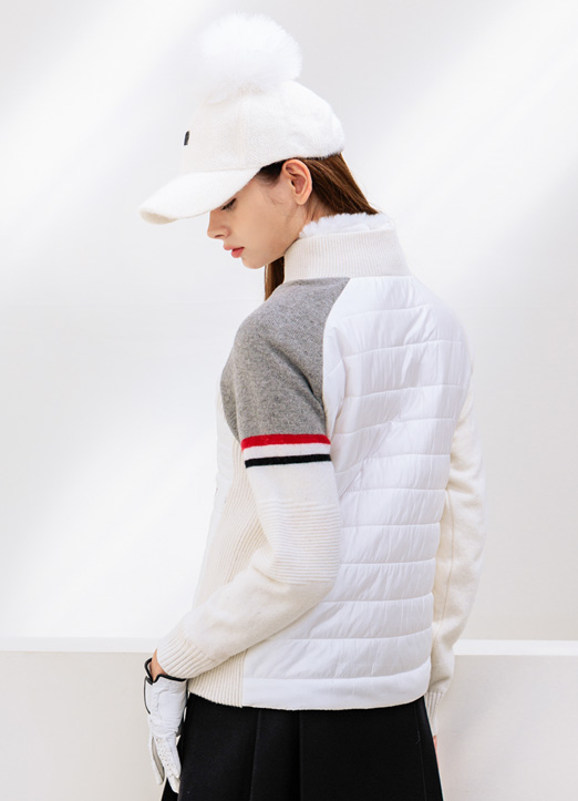 [QoG] キルティン切り替えウールカシミア防風ニットジップアップ jp37044