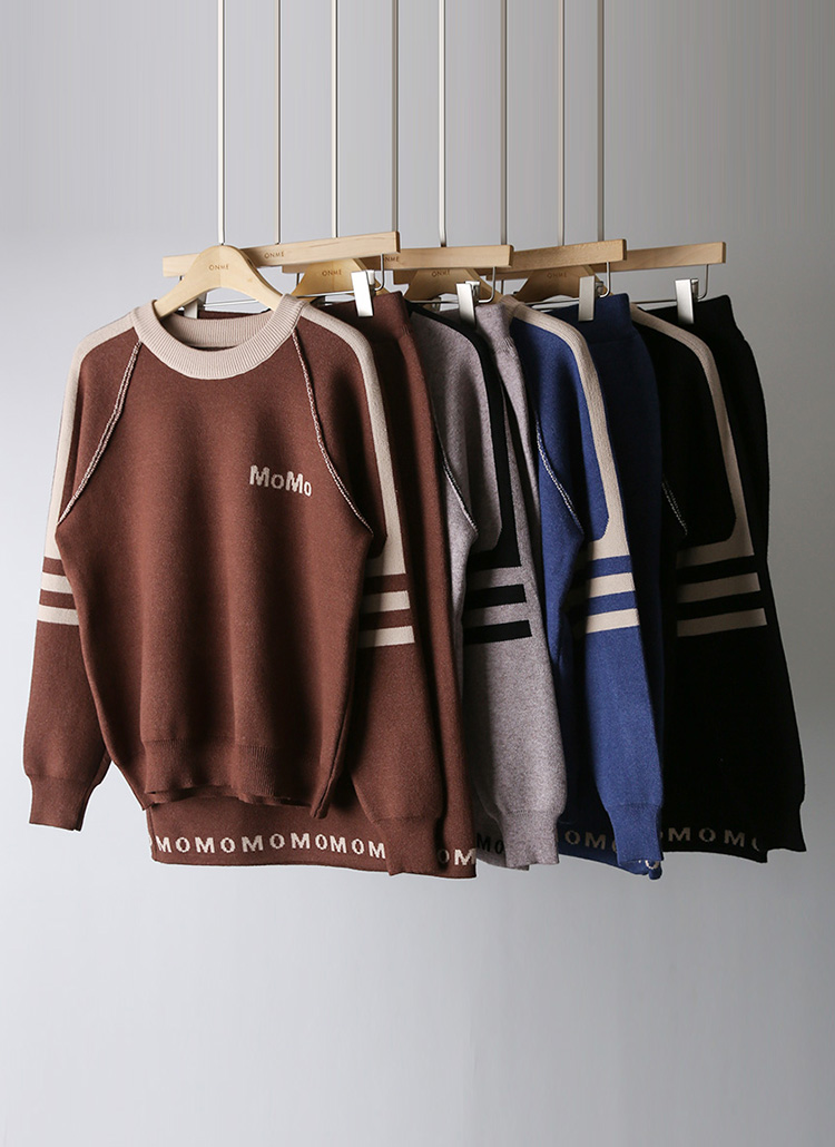 【4色展開】レタリングポイントバイカラーニットトップス&ニットスカートセットアップ SET37152