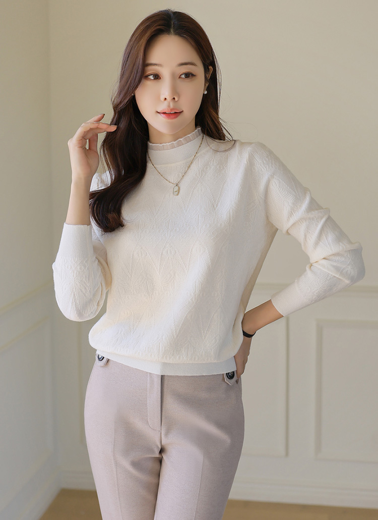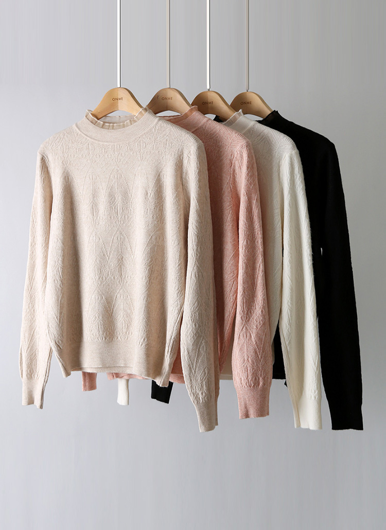 【4色展開】フリルネックジャガードニットプルオーバー nt37161