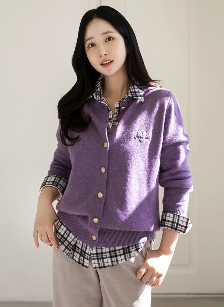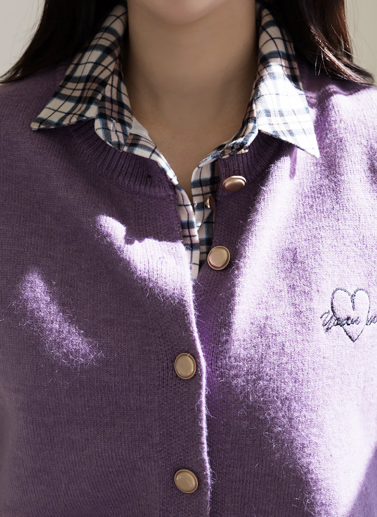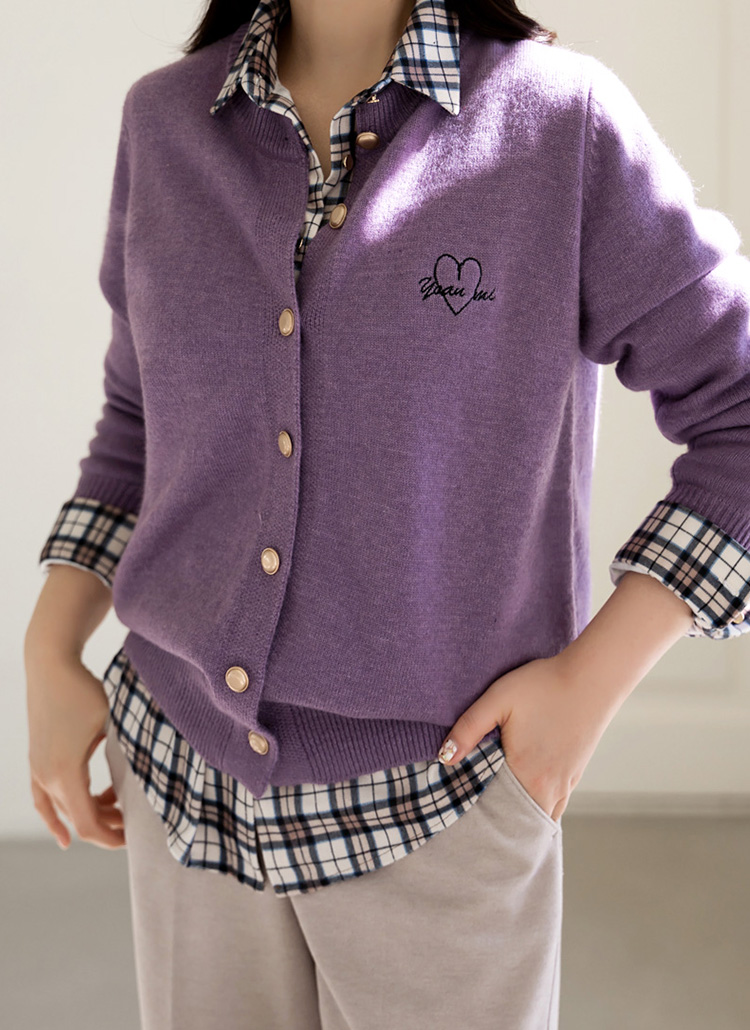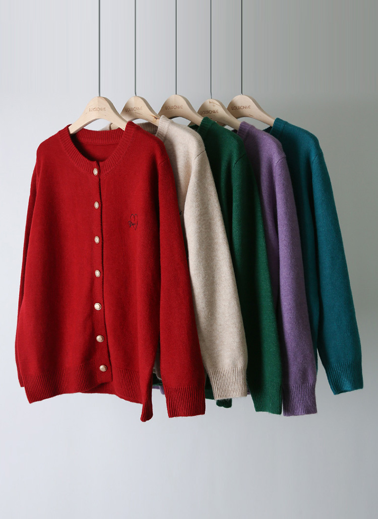 【5色展開】ゴールドボタンハート刺繍ニットカーディガン cd37188