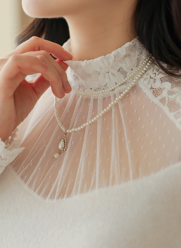 넥 셔링 시스루와 벨벳 레이스가 조화롭게 어우러져