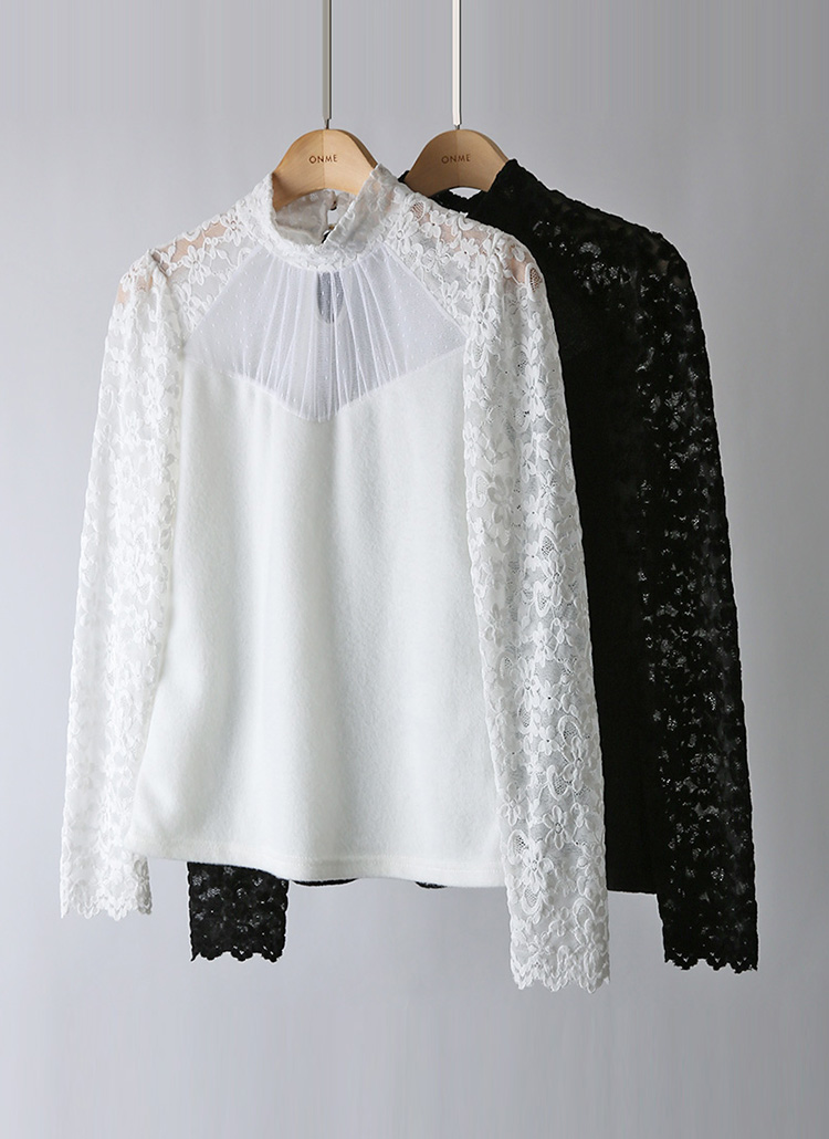[LouisAngel] シースルーハイネックフラワーレースプルオーバー bl37200